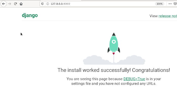 So, let's browse to the URL. Can you see the welcome page? Great, you're running the development server of Django.