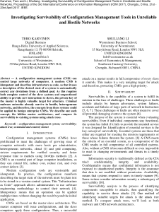 Karvinen, T. and Li, Shuliang 2017. Investigating Survivability of Configuration Management Tools in Unreliable and Hostile Networks. Proceedings of 2017 3rd International Conference on Information Management (ICIM 2017). Chengdu, China. 21 - 23 Apr 2017 IEEE . doi:10.1109/INFOMAN.2017.7950402