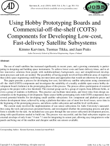 Karvinen, K., Tikka, T. and Praks, J., 2015. Using hobby prototyping boards and commercial-off-the-shelf (cots) components for developing low-cost, fast-delivery satellite subsystems. Journal of Small Satellites, 4(1), pp.301-314.